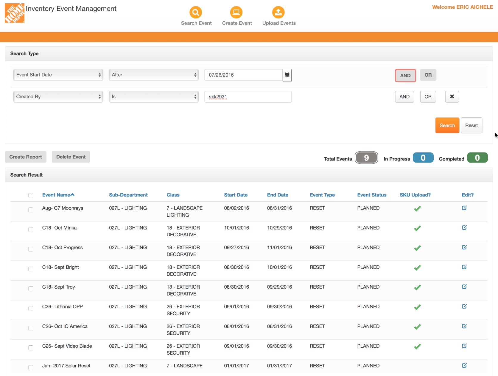 We also implemented a “Show My Events” button to allow the users to quickly find only their items to make their queries even faster.