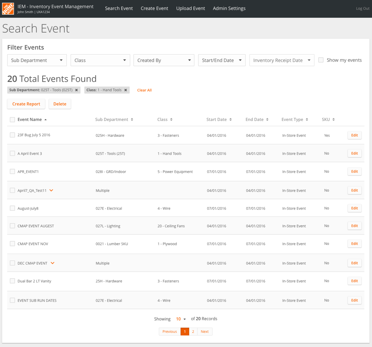 Inventory Event Management is a system where business analysts would create events in order to supplement the inventory of stores based on holidays or other occasions that were not part of the forecasting process. This system consisted of multiple processes that required the uploading of unvalidated local Excel files and a confusing search interface that the users had several issues interacting with. The Enterprise UX Team assigned me to the project to help the Product Owner and development team streamline this process. We conducted several UX processes including user testing, research synthesis, and design studios in order to dig into the issues and make sure we delivered the best product we could for the users.